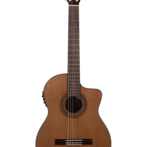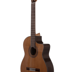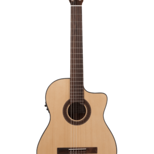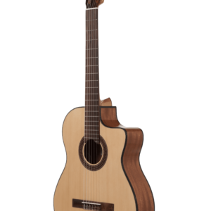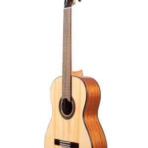 The MCG-80’s solid spruce top with beautiful Indian rosewood back and sides presents an outstanding option for the serious student or aspiring professional player. The MCG-80 ranks as one of Katoh’s most popular guitar choices, beautiful tone and playability go hand in hand with outstanding value. Cutaway for access to higher frets and Fishman electronics raise the performance possibilities of this instrument.