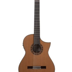 Based on research by Kenny Hill into makers of the ‘Madrid School’, the Katoh Madrid has sparkling highs and rich strong basses, reminiscent of the golden age of Spain. Maestros like Tarrega and Segovia helped to make guitars built in the legendary Madrid tradition. This model comes with cutaway and Fishman electronics.
